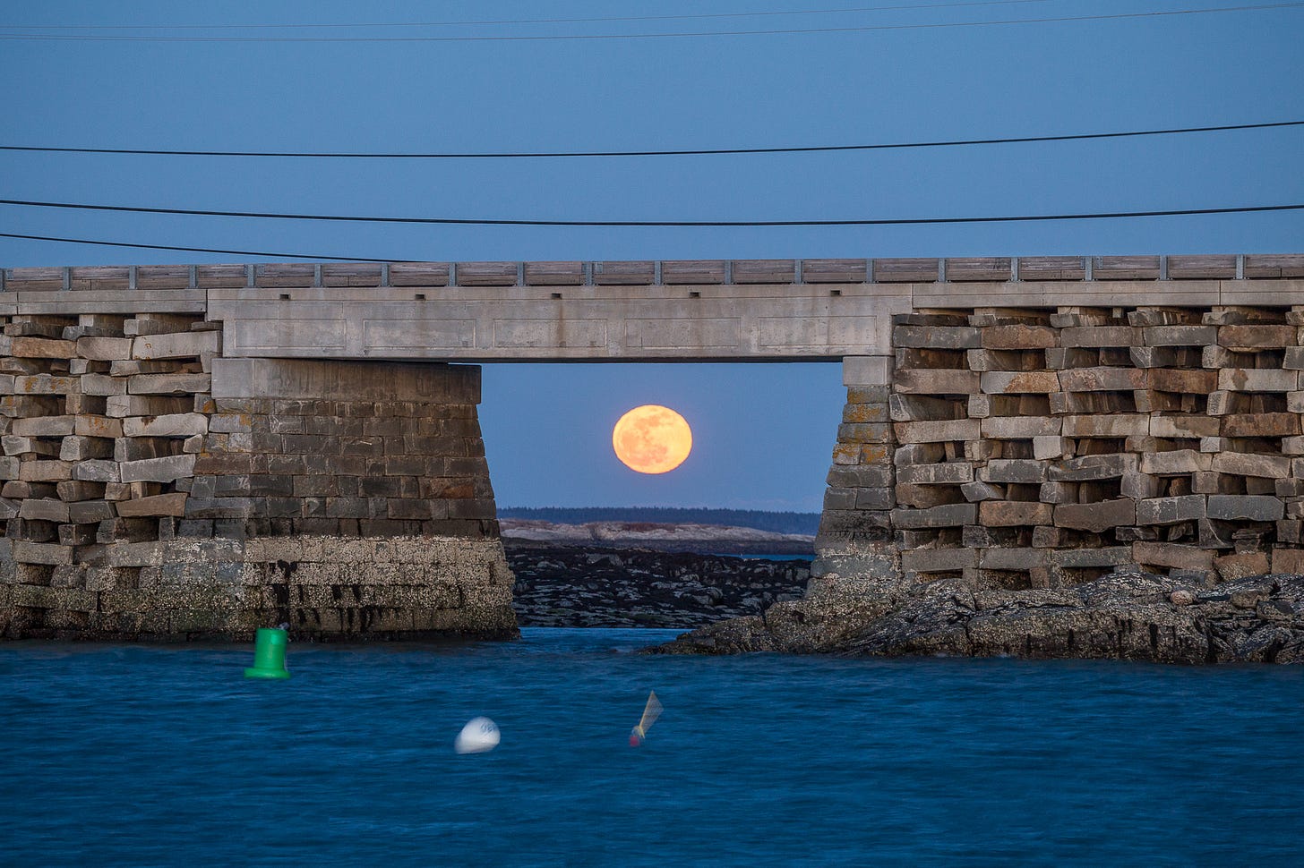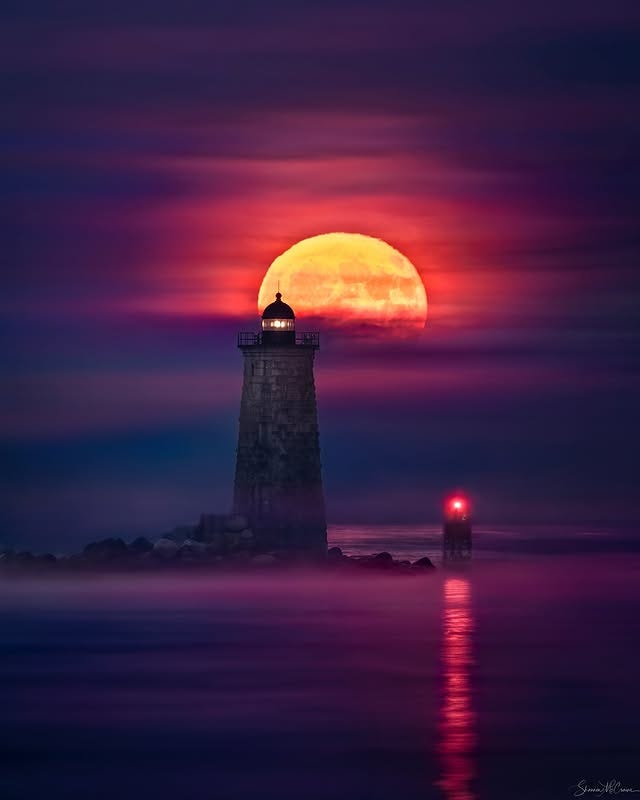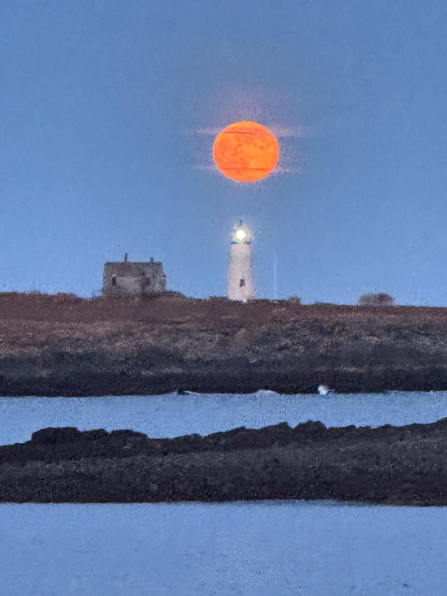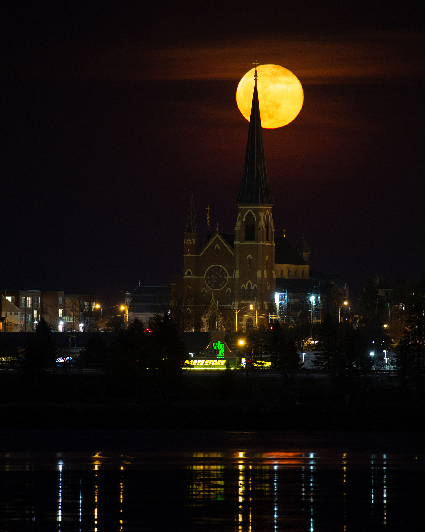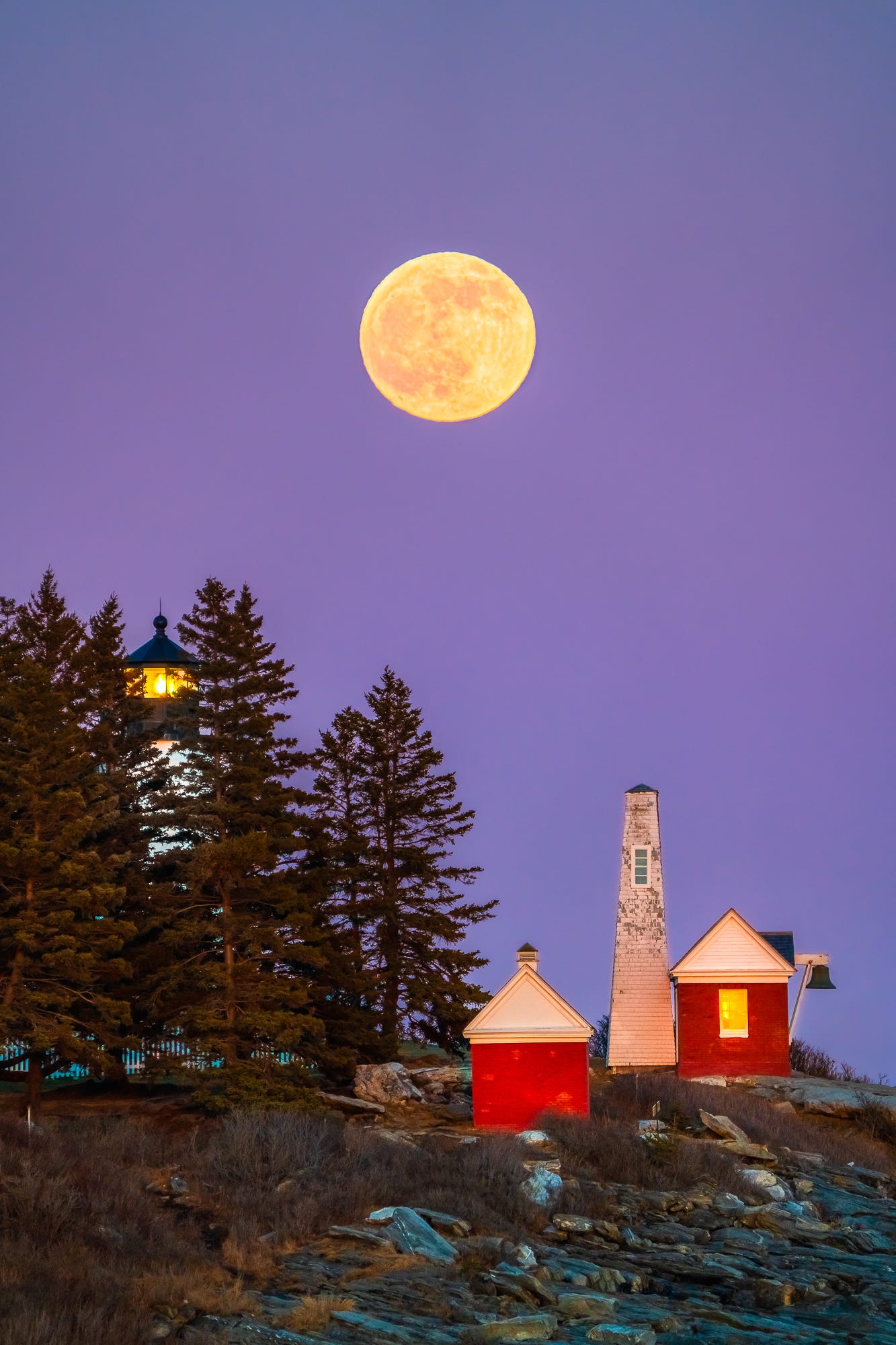 Heads-up: the moon moves up and right fast in the northern hemisphere, so step left to keep it framed with the lighthouse as it rises. Once you get an idea of where the moon is, you can move around and adjust your framing until you have the moon right where you want it.