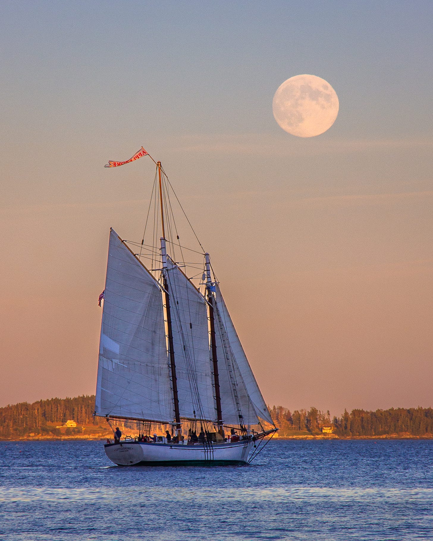 Prime time. There’s usually a nice balance between light on your foreground and the light of the moon. I like the contrast between the blue light of early twilight and the yellow-orange moon. It’s easy to expose and aesthetically pleasing.