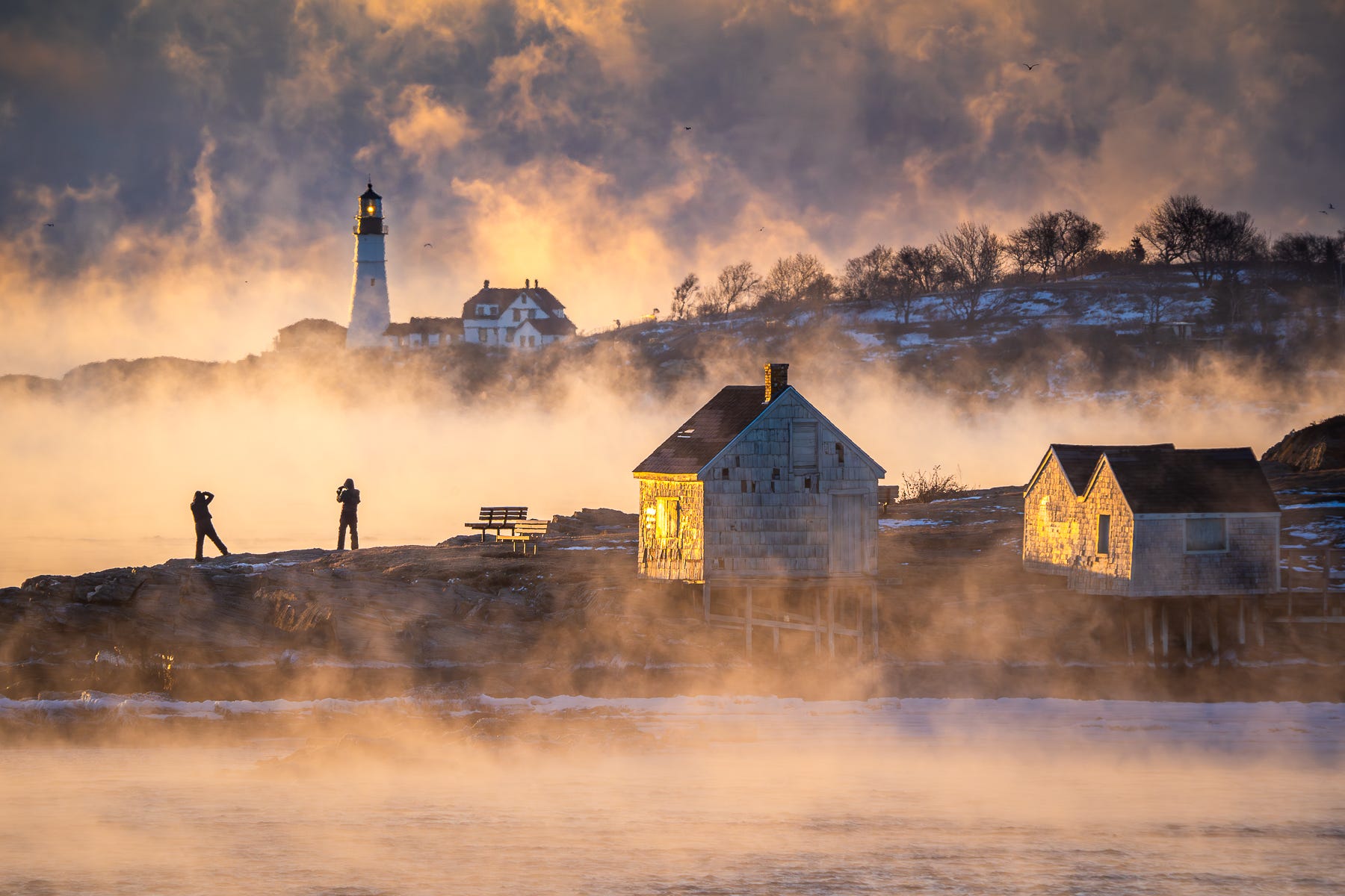 It doesn’t get much more dramatic than this. Mornings when the temperature dips into the single digits and below zero create the conditions necessary for the formation of sea smoke, one of the coolest phenomena you’ll ever see. Sadly, we won’t be seeing these little shacks on Willard Beach any more.