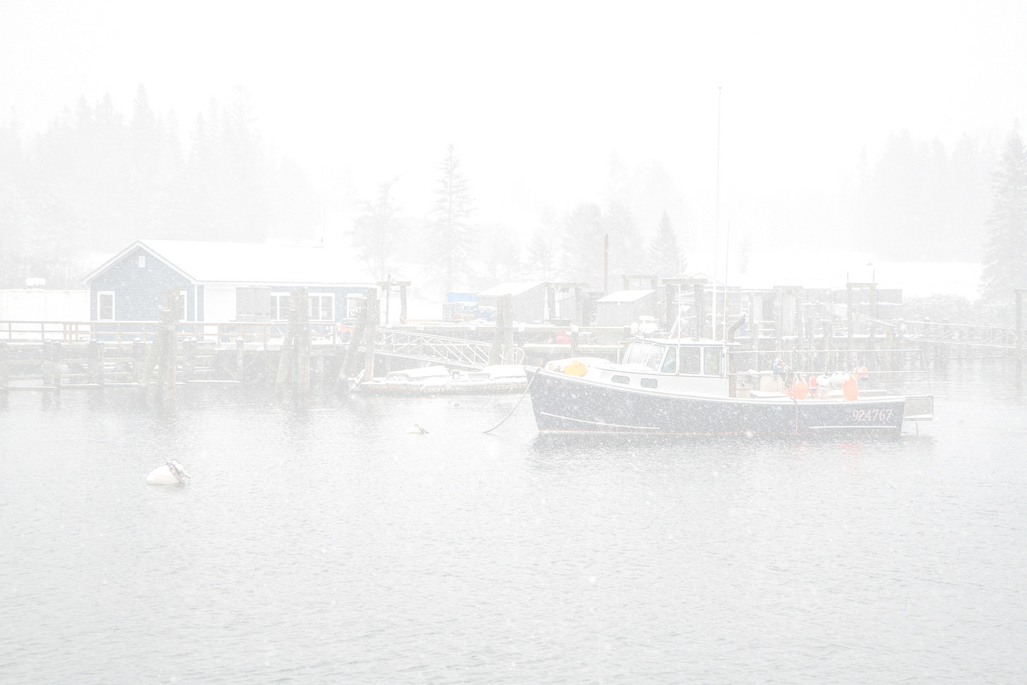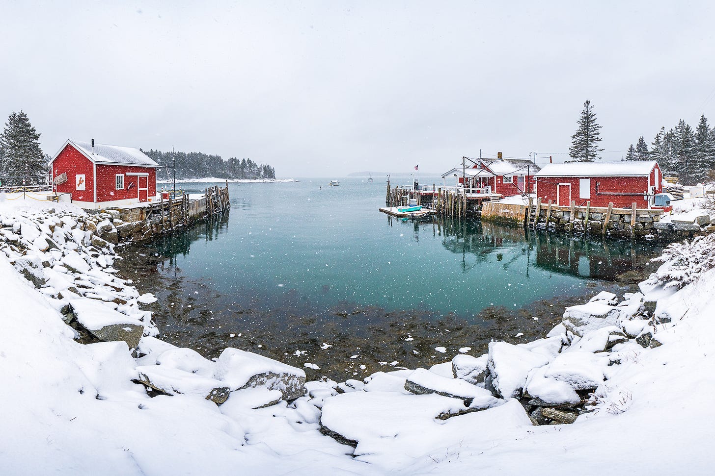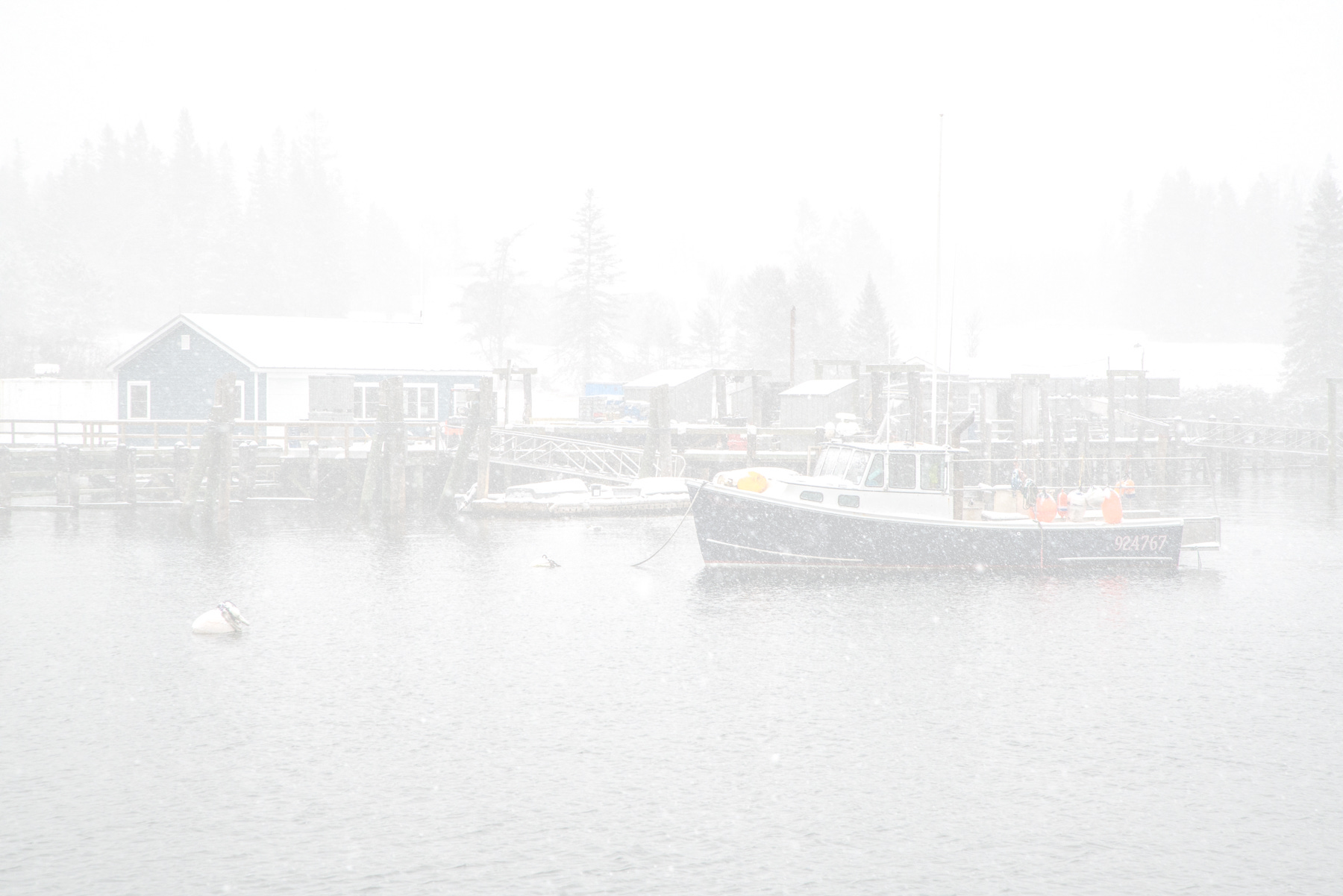Storms without much wind can convey a much more peaceful mood, as heavy snow fills the air and creates amazing atmosphere, such as in this scene from Owls Head Harbor.