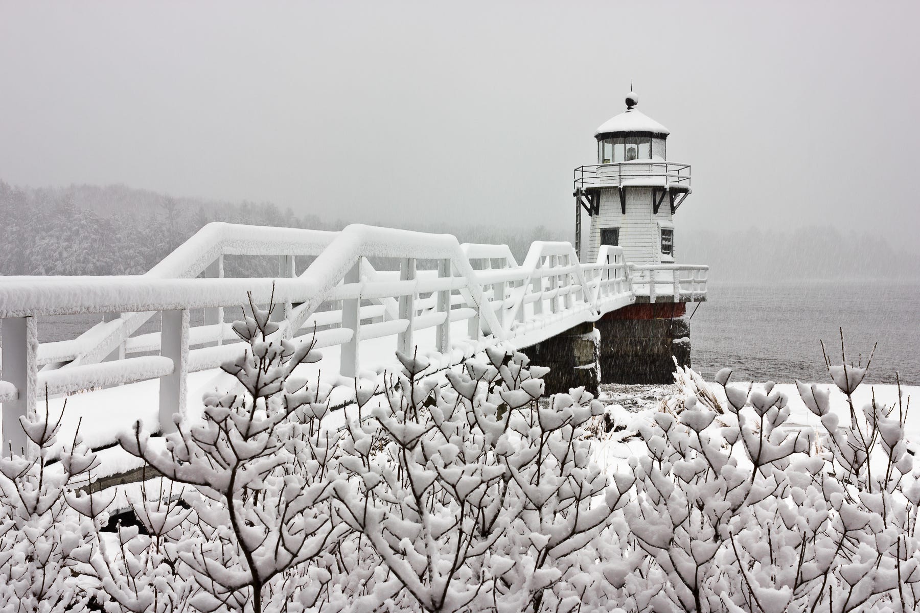 The monochromatic nature of winter is especially evident during a snowstorm. This was taken at Doubling Point Lighthouse.