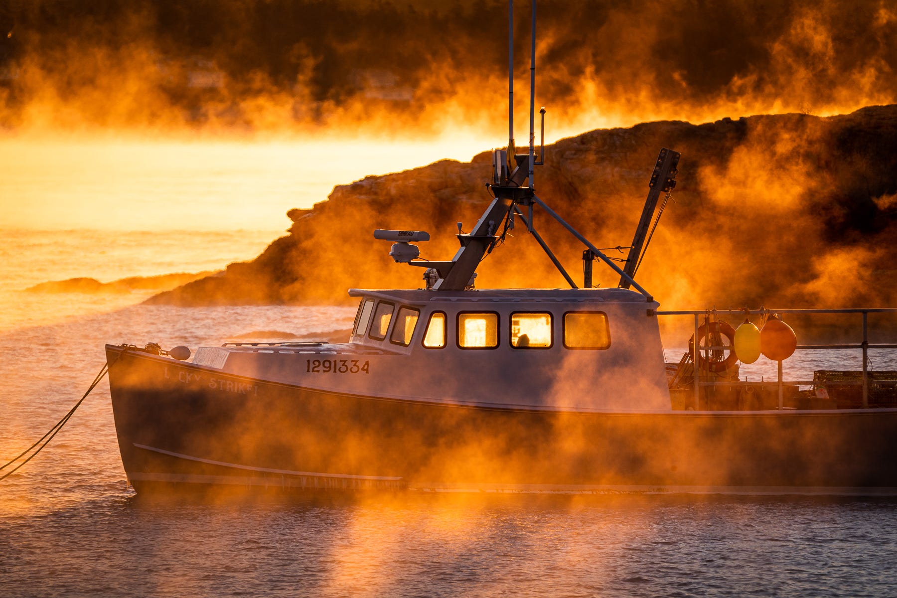 The temperature was -15F when I captured this. It’s a little later in the morning than most of my sea smoke photos, and the light is therefore less dramatic. I still love it, though.