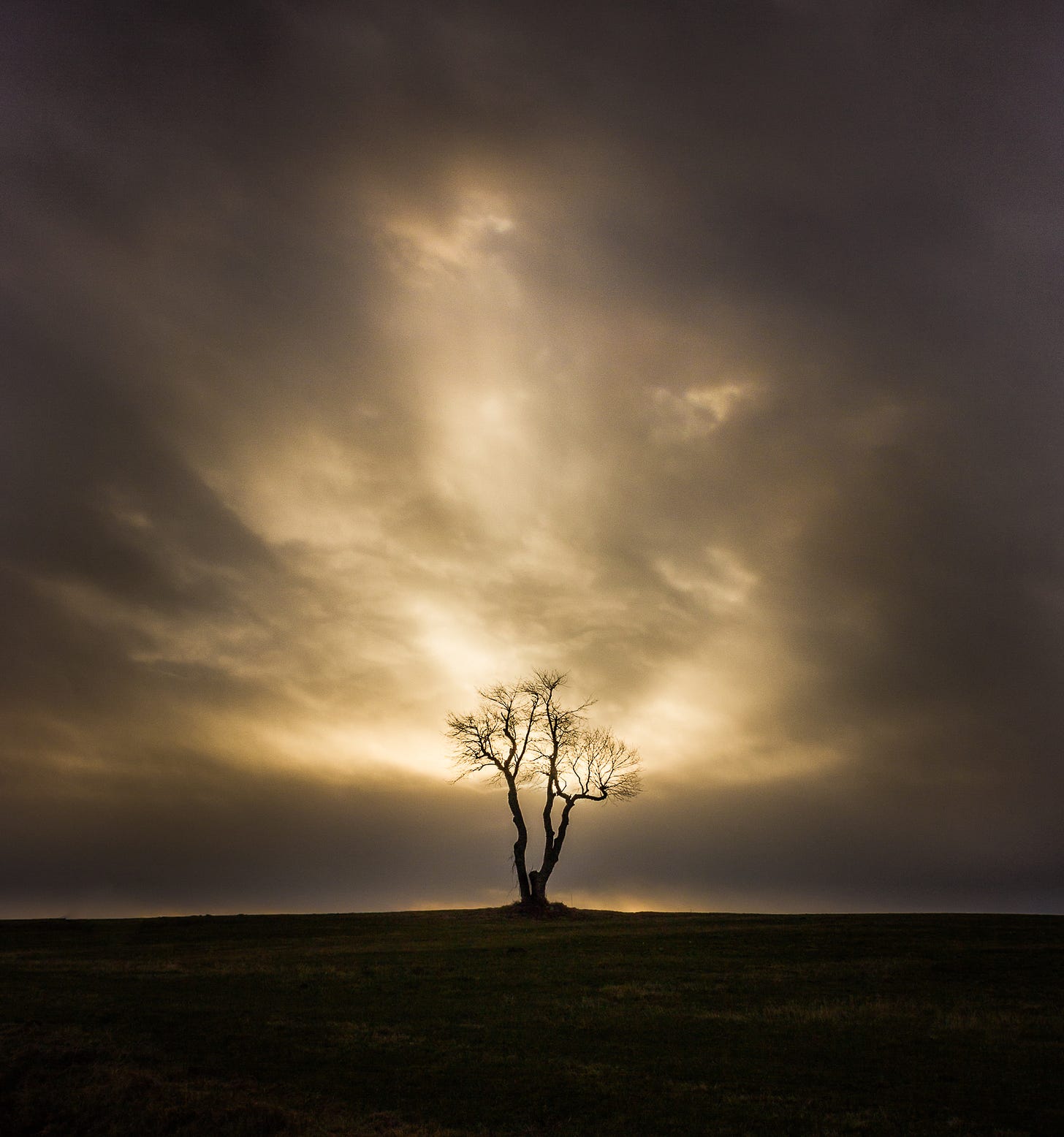 Bare trees make great subjects, and don’t require snow to look interesting. Some dramatic light, certainly evident in this case, can help!