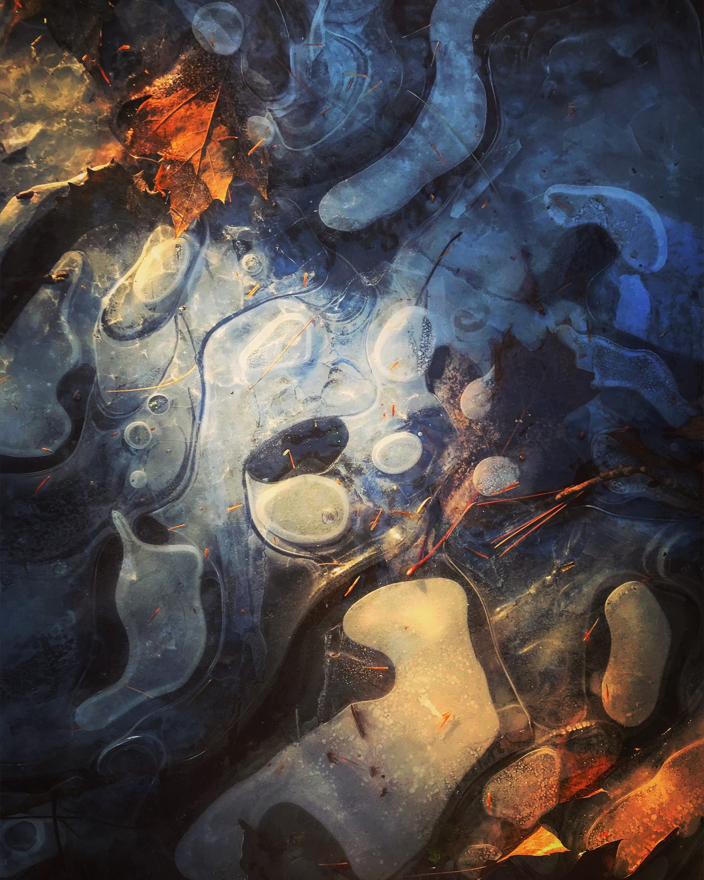 Things as simple as frozen puddles can look like abstract paintings. I love capturing these with my cell phone camera while out on walks. I should probably use my real camera more often on these incredible finds.