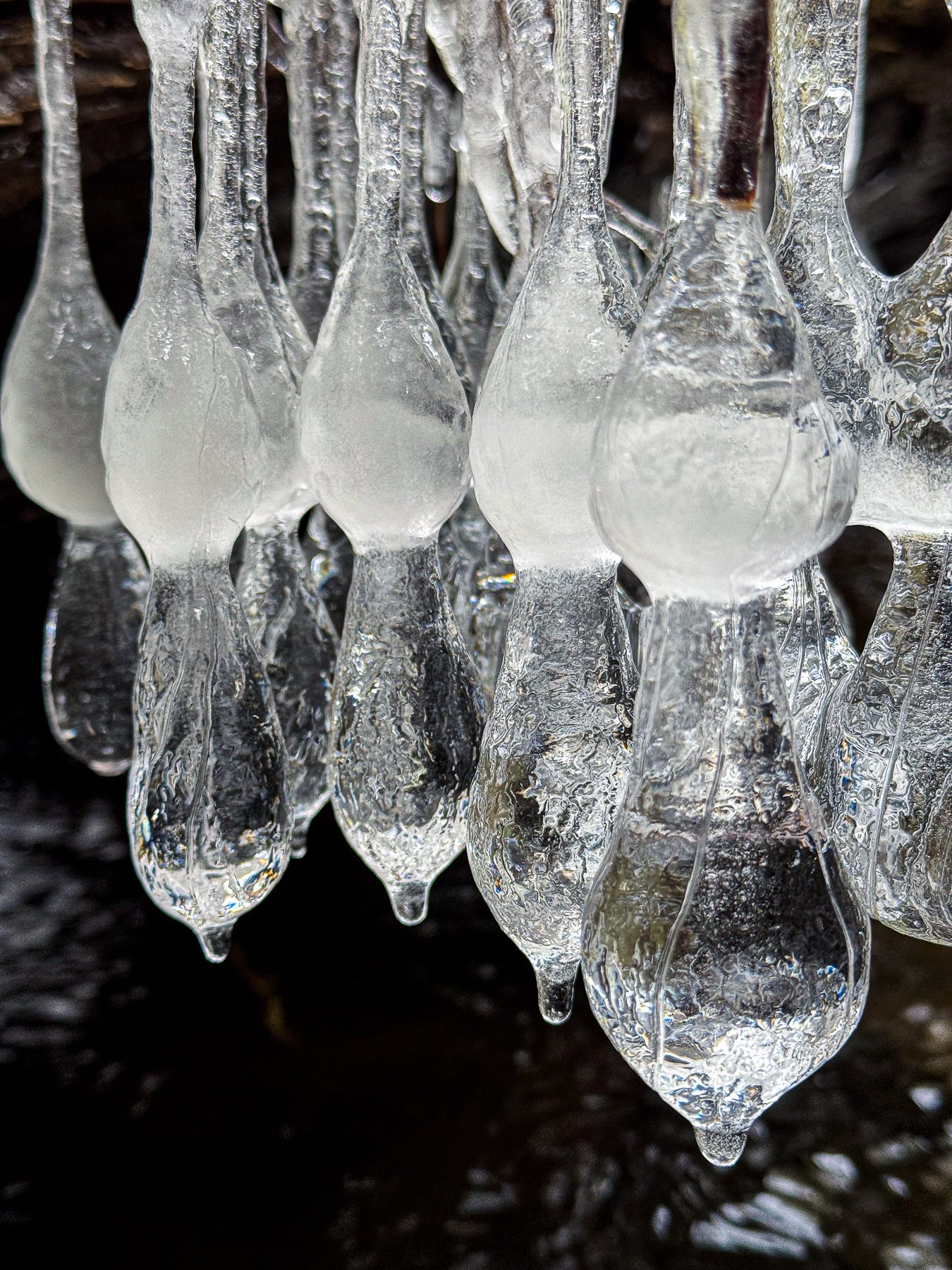 These fantastical sculptures were found dangling from a tree branch over some rapids in a nearby stream. The splashing water created these formations as it froze. Looking at them now, I’m suddenly reminded of the mothers in my life. :-)