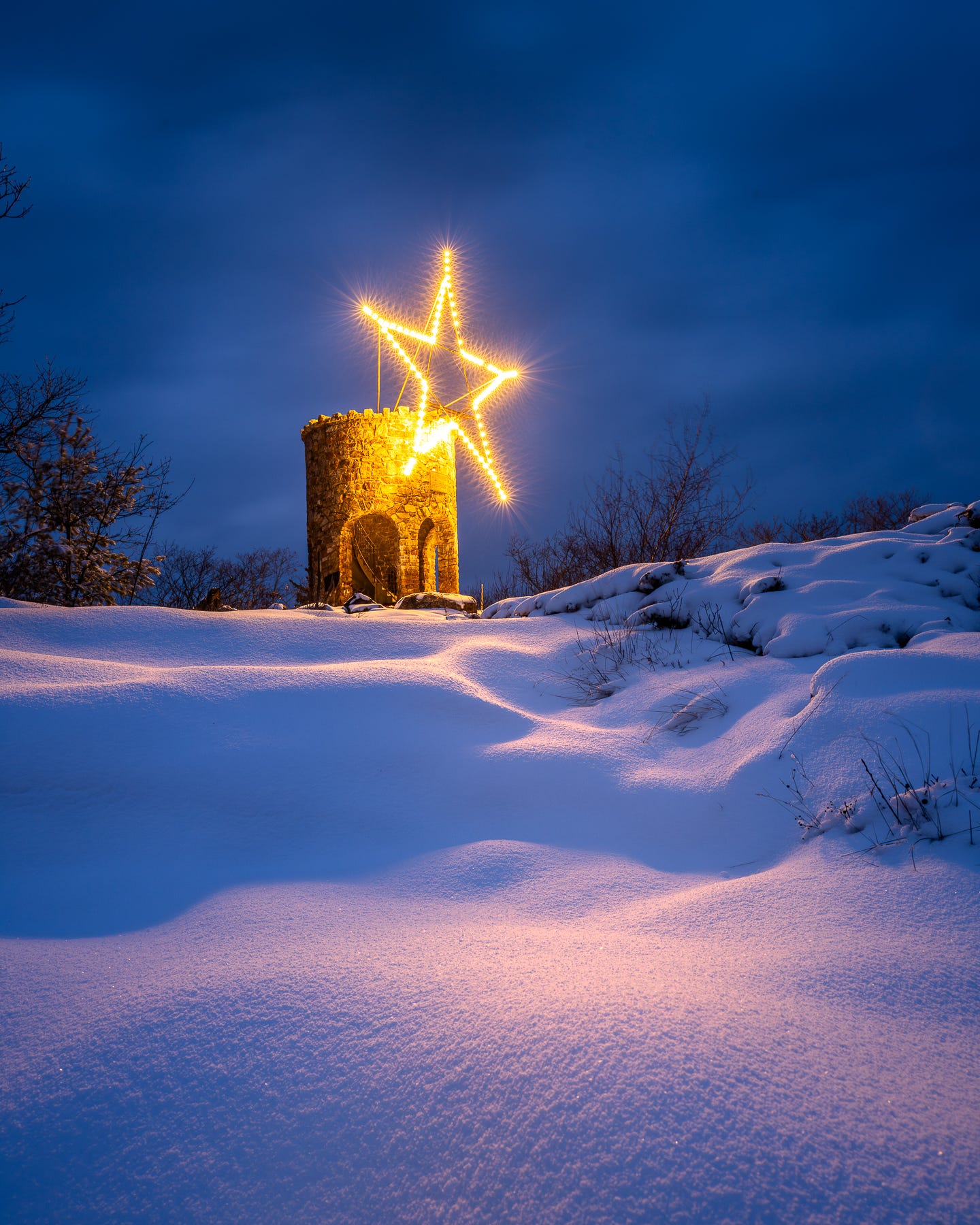The peace and beauty of freshly fallen snow is evident in this twilight capture from Mount Battie in Camden.