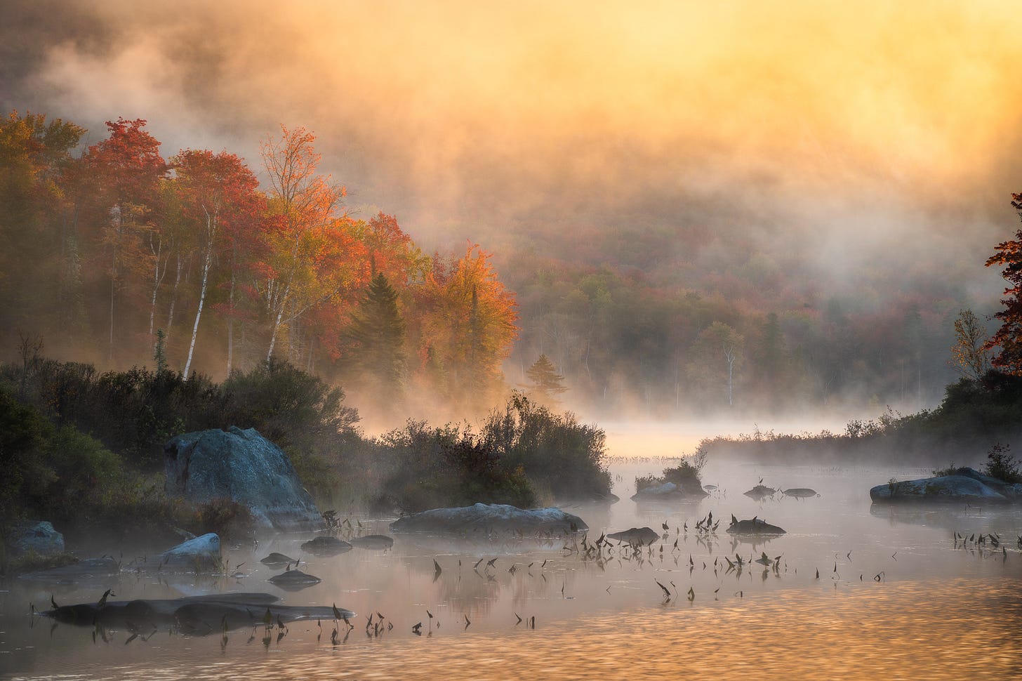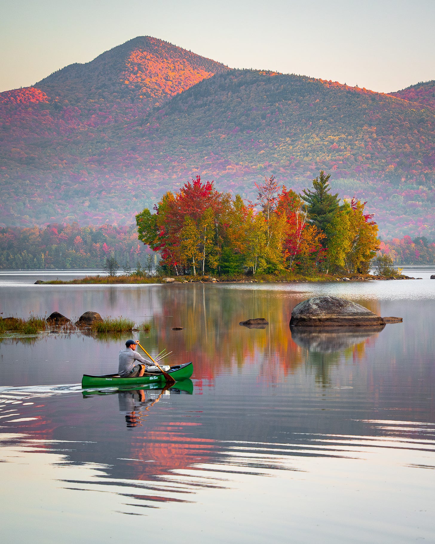 We then took the group to a location that was new to me, the Chittenden Reservoir near Killington, Vermont. I thought it was great, and although I was hoping for more mist coming off the water, a fisherman obliged and paddled out right as the sun started hitting the distant peaks. I was grateful to have something extra to make the image special.