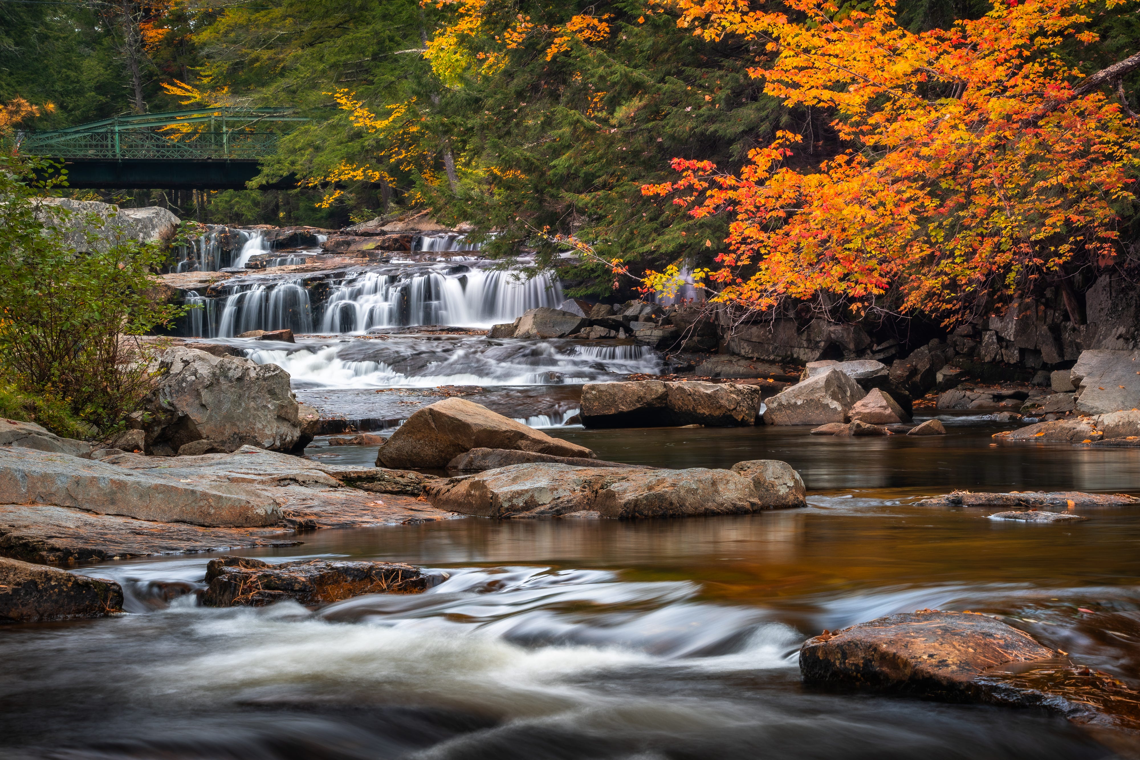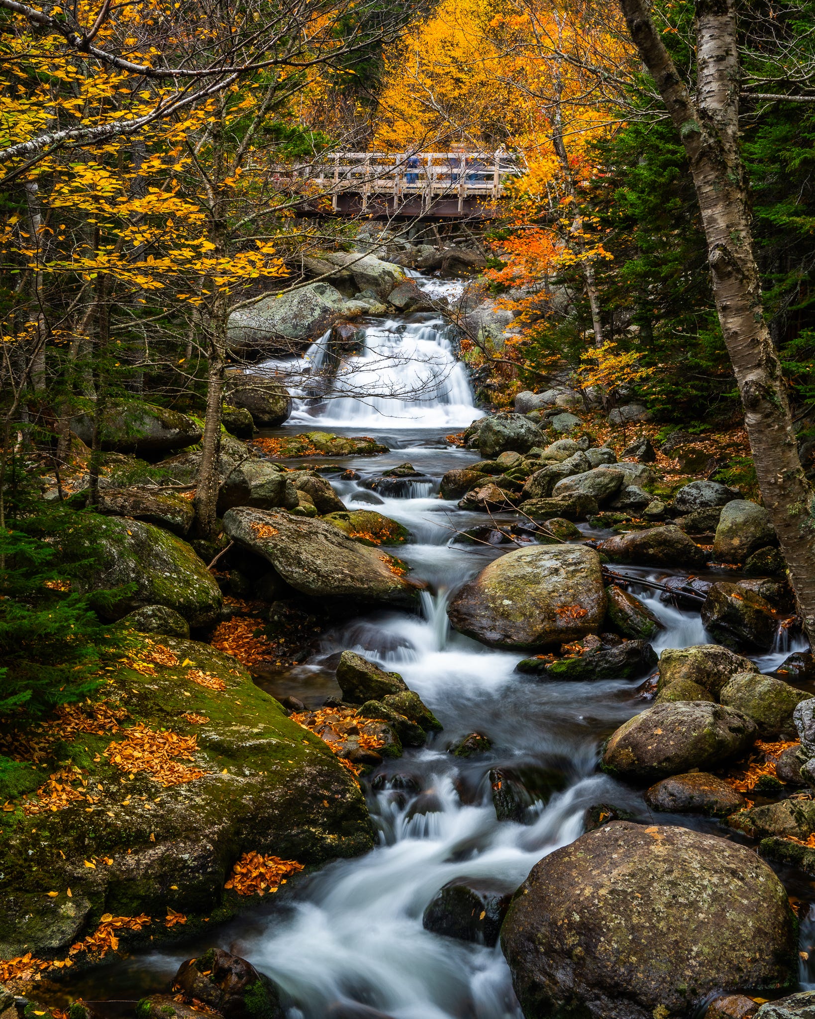 Traveling further into the notch, we found this set of cascades below the much more famous Crystal Cascade off of the Tuckerman’s Ravine Trail. Luckily, the branches growing in front of the waterfall and bridge had lost their leaves, and the fallen leaves on the rocks were actually my favorite part of the image!