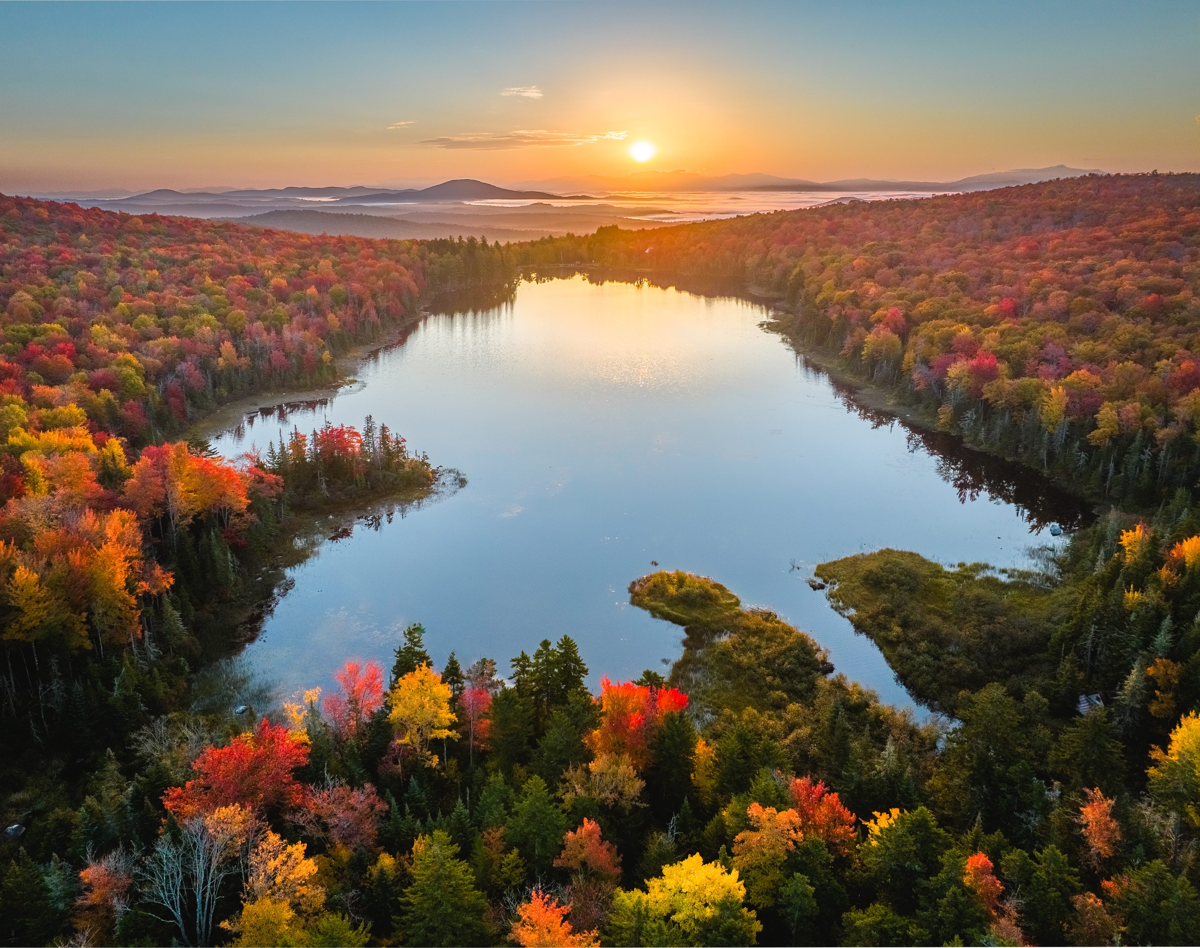 Another pond we visited the next morning was beautiful from ground-level, but an aerial perspective, made possible by the use of a drone, opened up a whole new world of potential. I loved seeing the valley fog in the distance, and backlit foliage, as usual, was incredibly eye-catching.