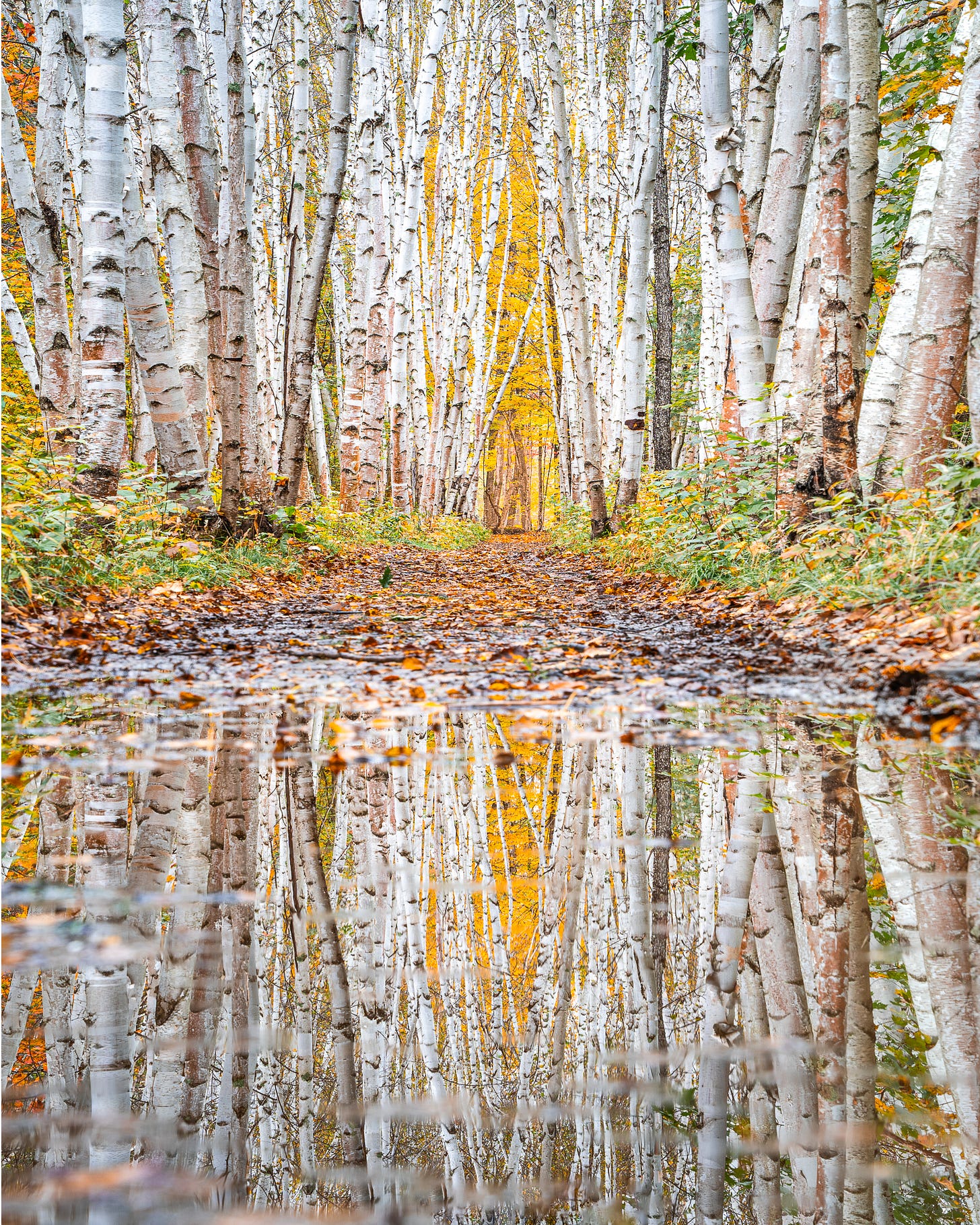 Finally, after teaching and photographing with the workshop group all week, I had to go and check out this well-known white birch path near Lincoln, NH on my own time after the workshop wrapped up. It was beautiful, and instead of photographing the exact same image everyone else has, I was able to get a nice reflection due to recent heavy rains.
